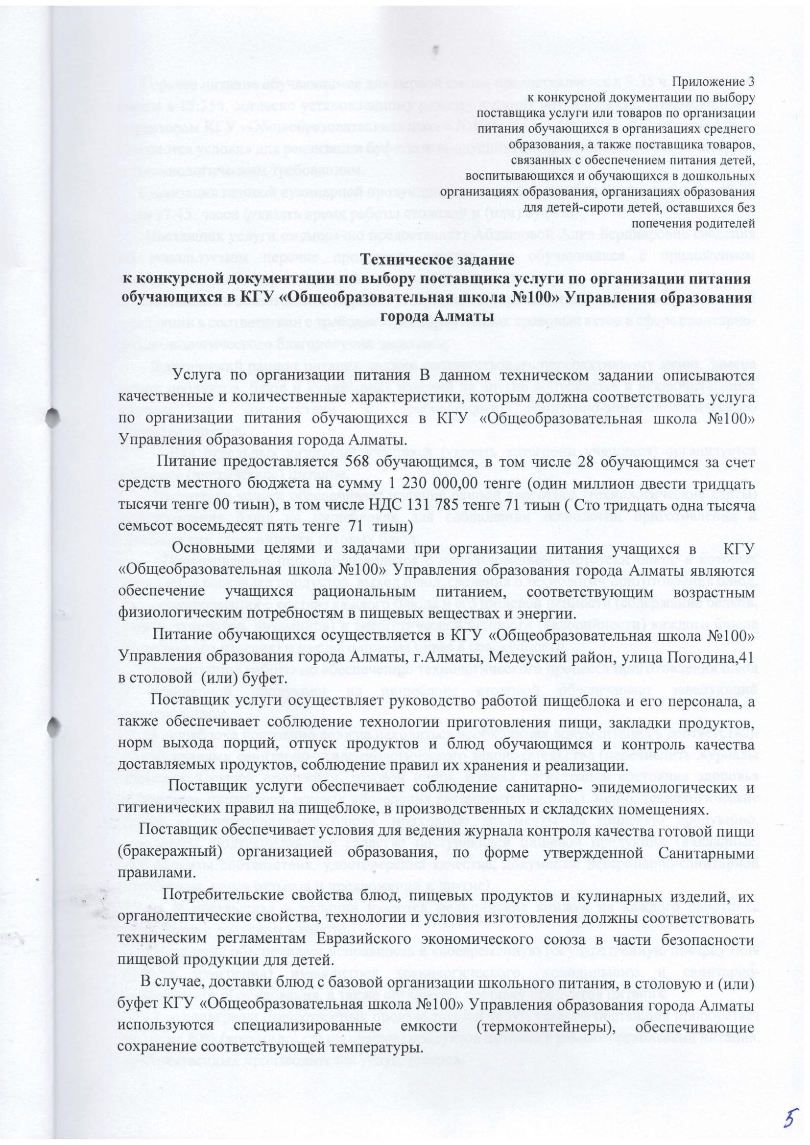 Тендерлік құжаттама » Школа №100 г. Алматы