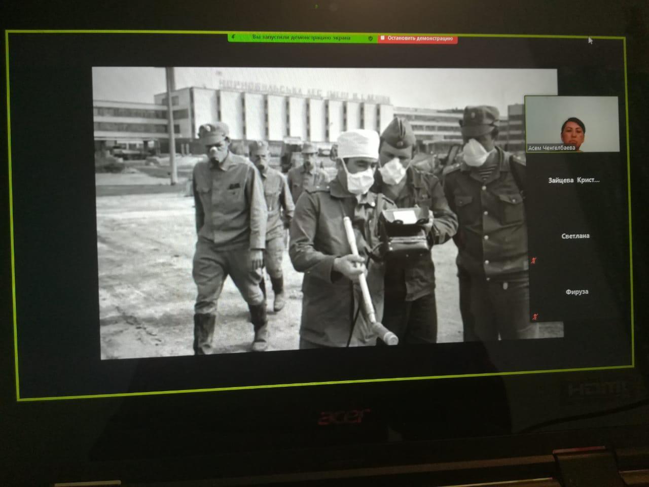 Сынып сағаттарында мұғалімдер компьютерге сүйене отырып, балаларға Чернобыль станциясының тарихы, апаттың себептері, қоршаған ортаға тигізетін зардаптары, станцияның тоқтатылуы туралы айтып берді. Презентациялар, сынып сағаттарындағы фотосуреттер 1986 жылғы экологиялық апаттың ауқымын айқын көрсетуге, Чернобыль апатынан кейінгі экологиялық проблемаларды терең және айқын көрсетуге мүмкіндік берді.