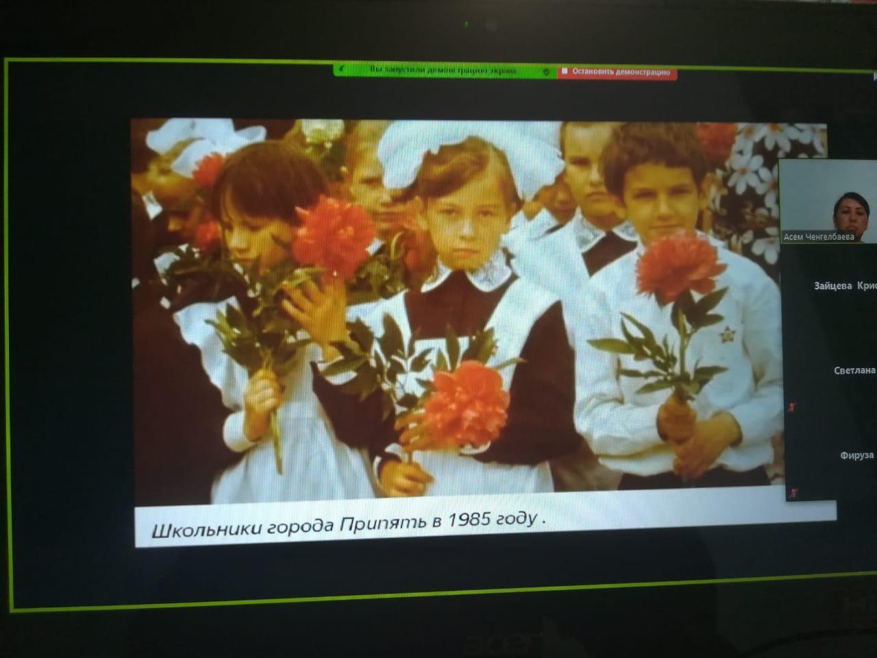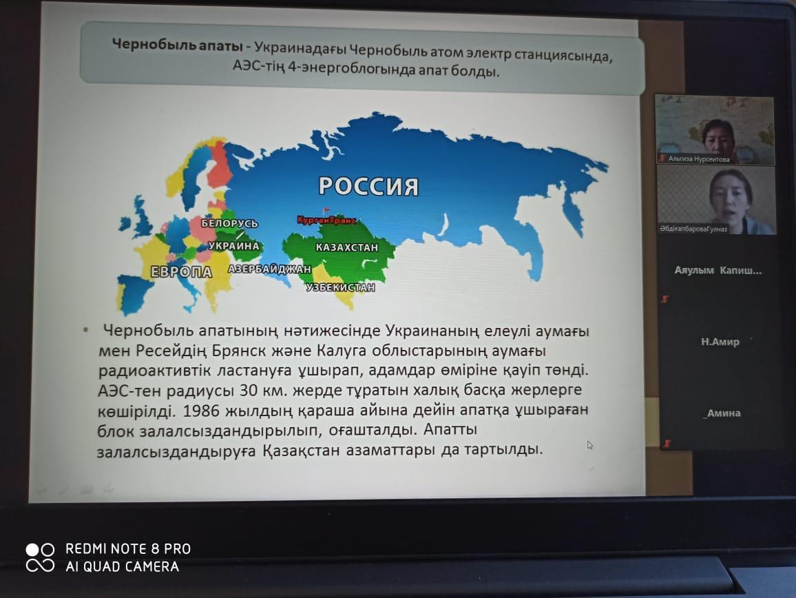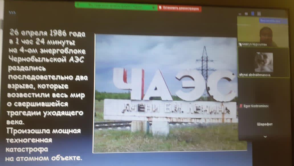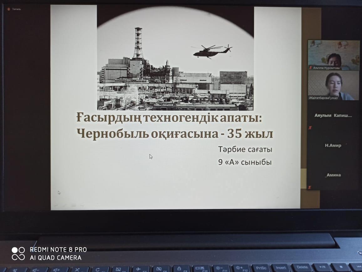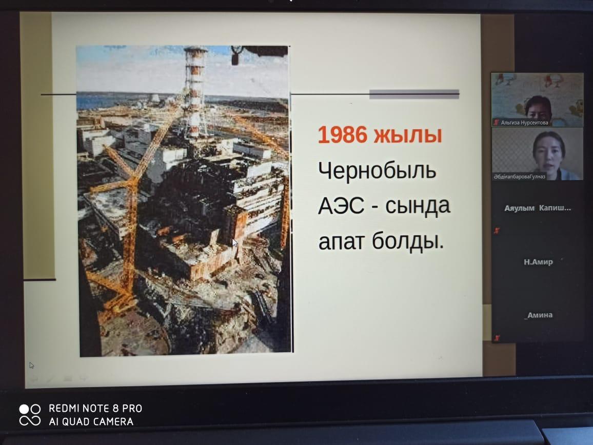 Бүгін 8-11 сынып оқушылары арасында Чернобыль АЭС-індегі атом электр станциясындағы апаттың 35 жылдығына арналған «Чернобыль апаты» тақырыбында сынып сағаттары өтті.