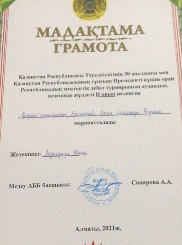 2 кезең қарары Б.П. Қазіргі жастар бір мамандыққа бағытталғаның қолдамайды тақырыбы негізінде өтті. Финалда «Қыран» фракциясы мен «Абай шәкірттері» фракциялары ойын көрсетті. Турнир қортындысы бойынша «Қыран» фракциясы лидер Бисенбаева Аяна және мүшесі Слямғазы Аружан аудандық турнирге жолдама алды.
