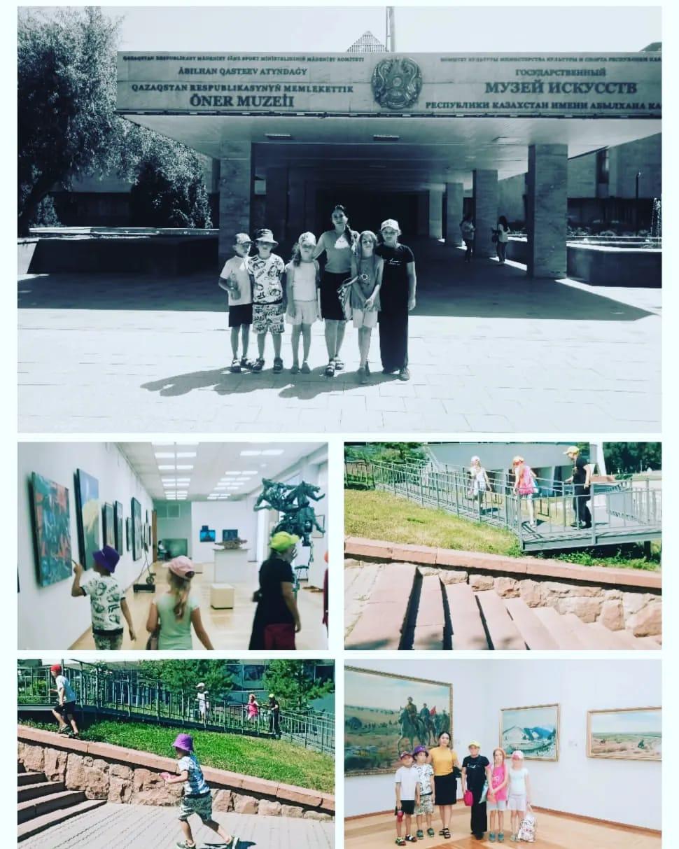 Бүгін, 05 тамыз күні мектеп жанындағы жазғы лагеръ балалары сүйікті қаламызда орналасқан Қазақстан Республикасы мемлекеттік Ә. Қастеев атындағы өнер мұражайына барды. Мұражайда танымдық ақпараттармен танысып, жәдігерлерге қызығушылықпен қарап, атақты қазақстандық суретшілердің суреттерін тамашалады.