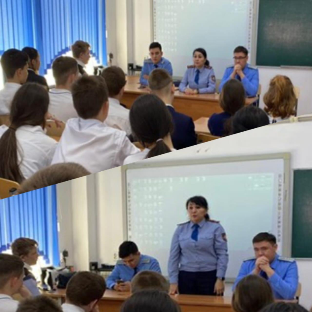 Прокуратура және ювеналды полиция өкілдерімен кездесу жақсы, достық атмосферада өтті.Оқушылар прокурор және полиция қызметкері болудың қыр сырына қызығушылық танытты.