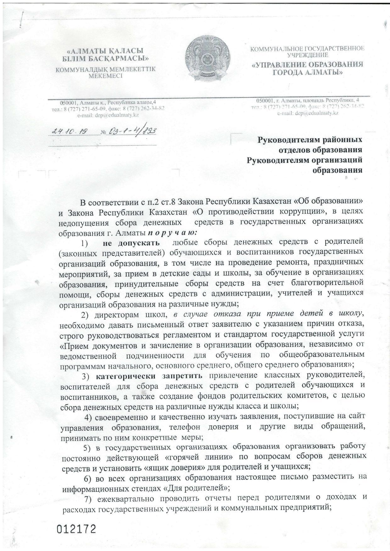Сыбайлас жемқорлыққа қарсы күрес туралы » Школа №100 г. Алматы