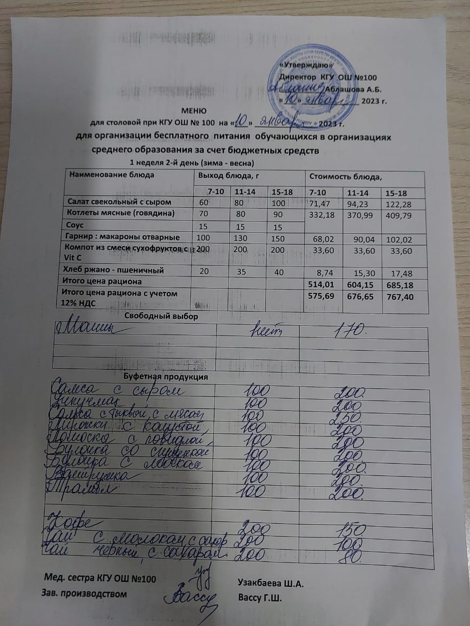 мәзір 10.01.2023 » Школа №100 г. Алматы