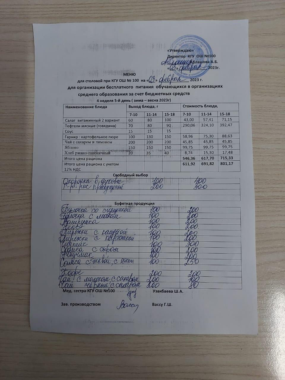 мәзір 03.02.2023 » Школа №100 г. Алматы