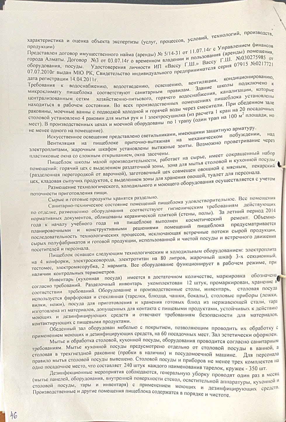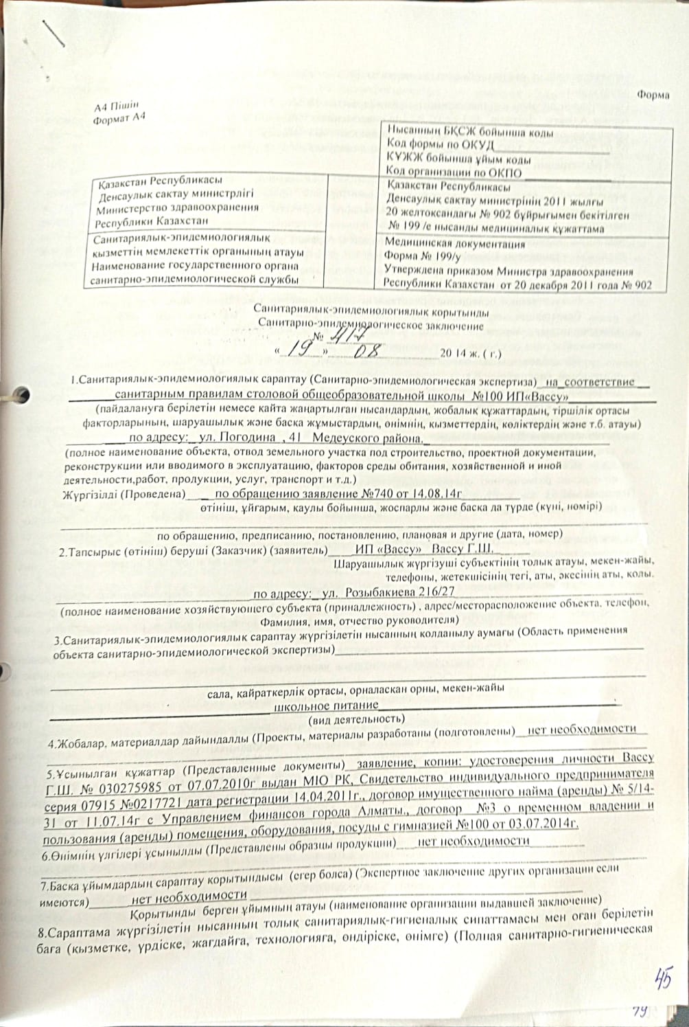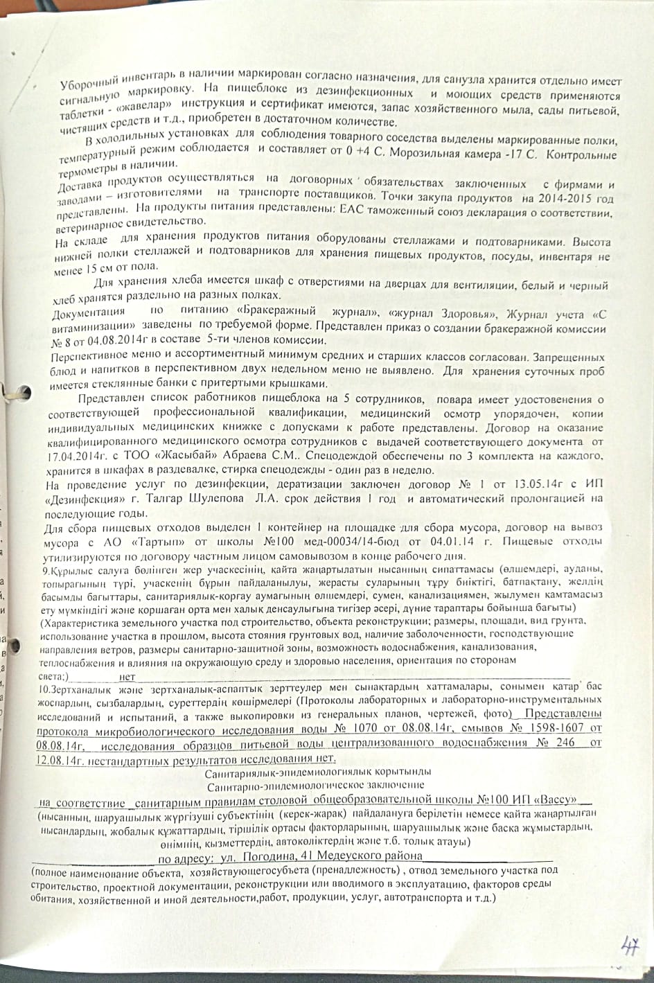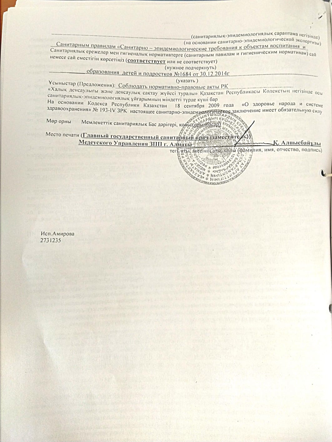No 417 санитарлық-эпидемиологиялық қорытынды » Школа №100 г. Алматы