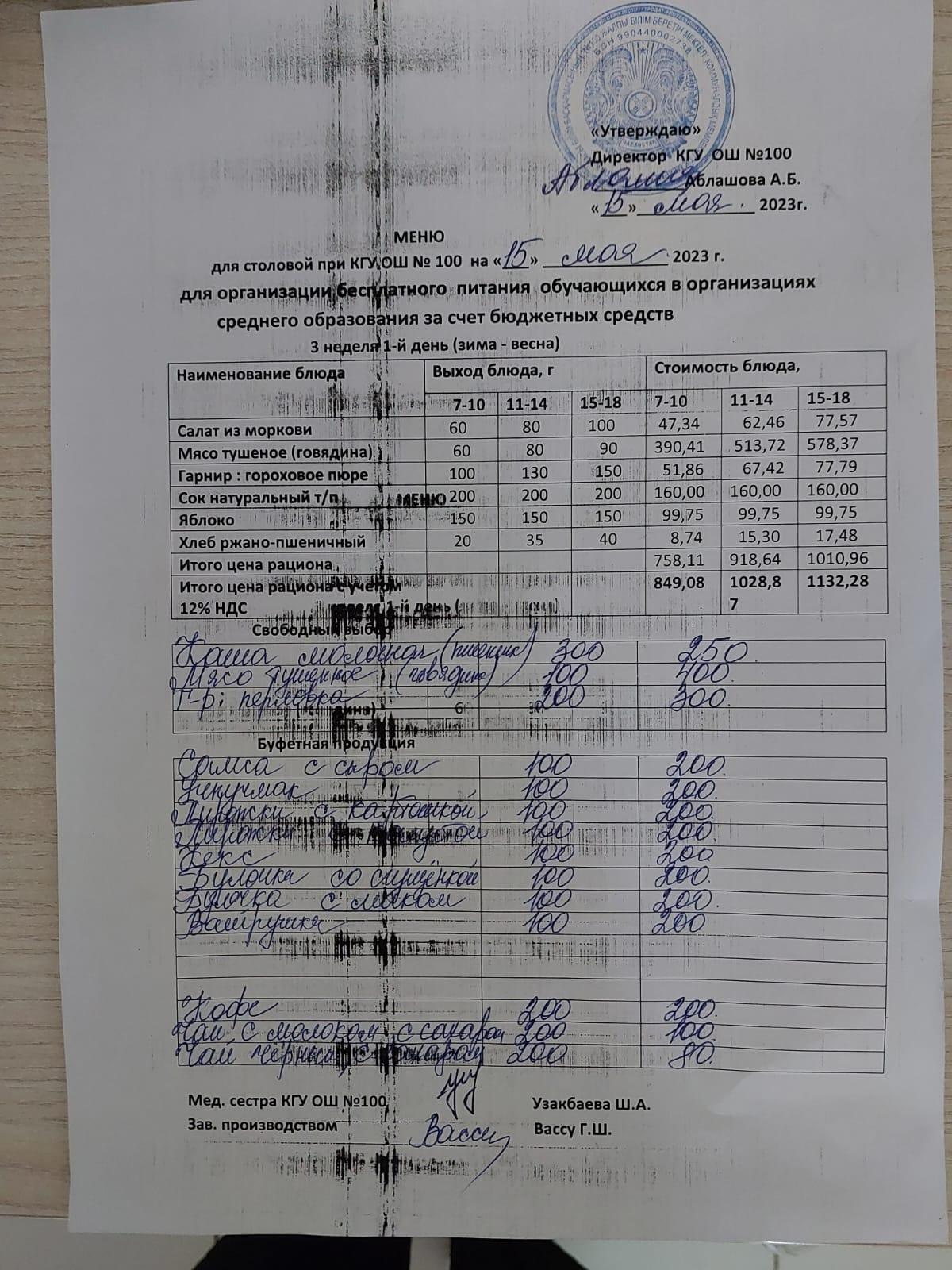 мәзір 15.05.2023 » Школа №100 г. Алматы