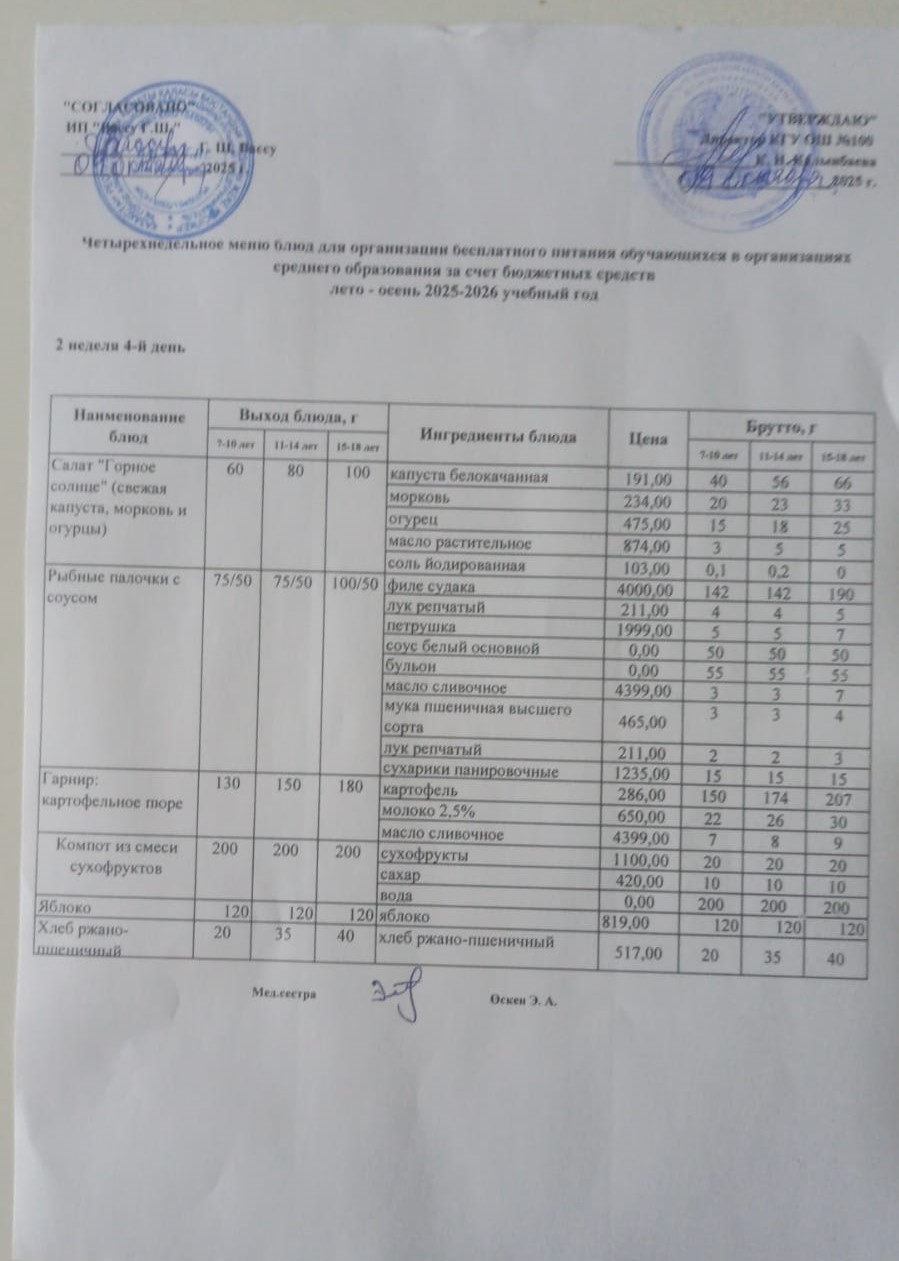 Ас мәзірі 2 апта 4- ші күн » Школа №100 г. Алматы