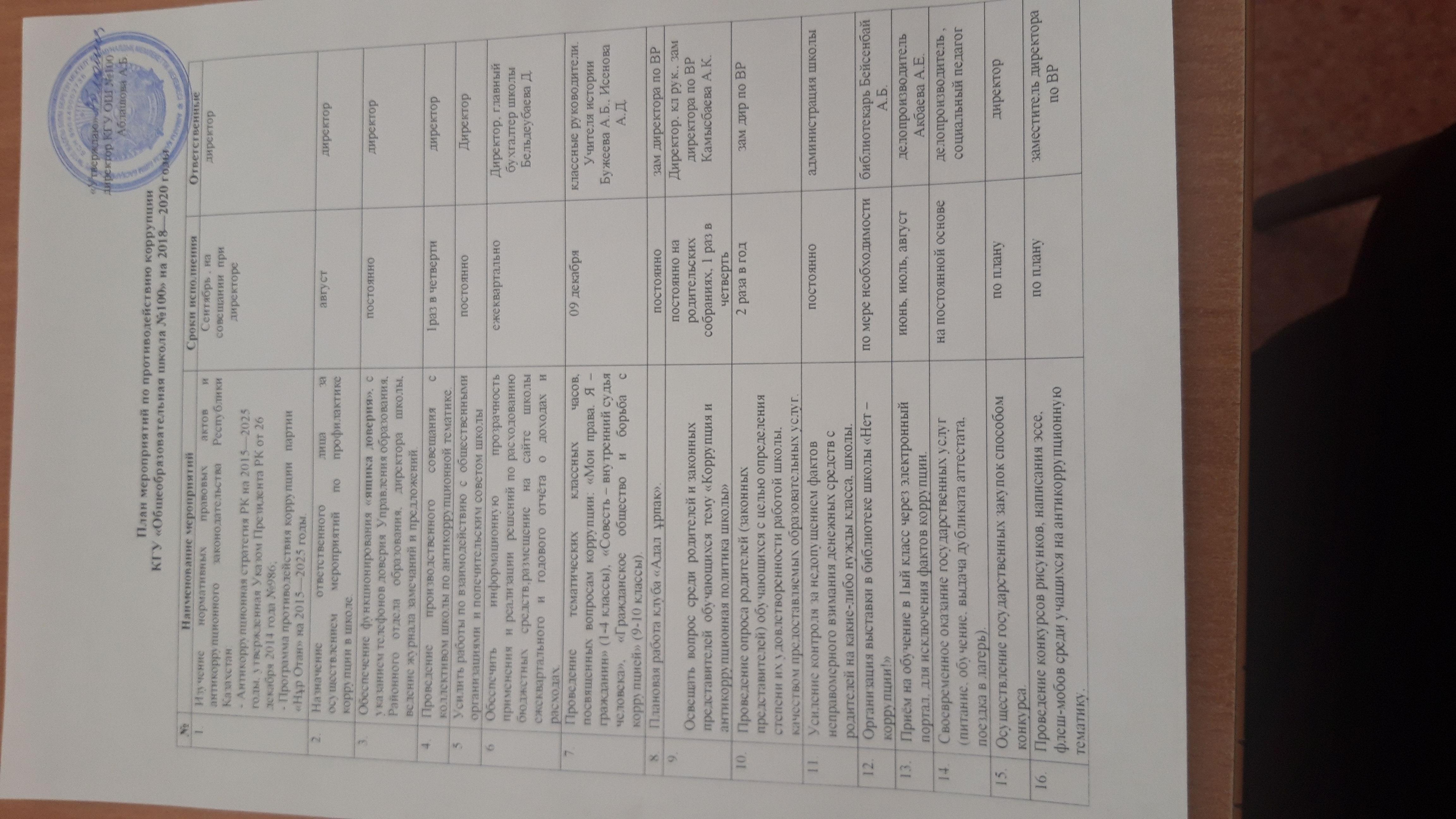 23 сәуір 2020 0 1 2 3 4 5 «No100 орта мектеп» КММ-нің 2018-2020 жылдарға арналған сыбайлас жемқорлыққа қарсы іс-қимыл жоспары